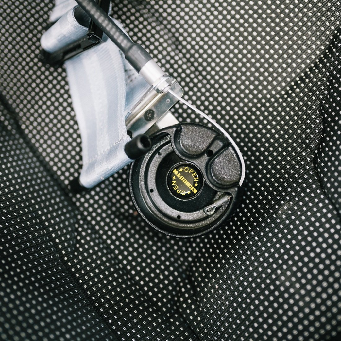 Il cuscino NOAH ripiegato è fissato al pannello del sedile sotto il cuscino. È collegato tramite un tubo flessibile a una piccola bottiglia ad alta pressione dotata di una valvola.